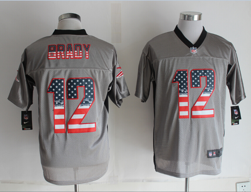 2014 New Nike New England Patriots Patriots 12 Brady USA Flag Fashion Grey Shadow Elite Jerseys