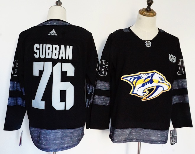 Adidas Nashville Predators #76 Subban Black 100th Anniversary Jersey