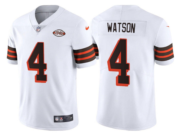 Men’s Cleveland Browns #4 Deshaun Watson White 1946 Collection Vapor Untouchable Limited Jersey