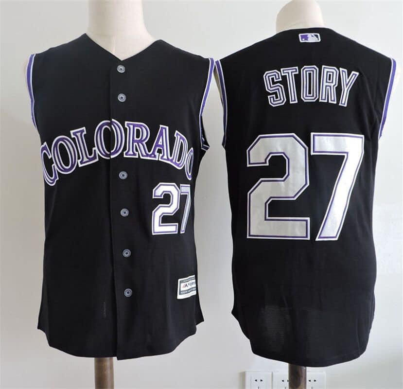 Men’s Colorado Rockies #27 Story Black Sleeveless Baseball Jersey