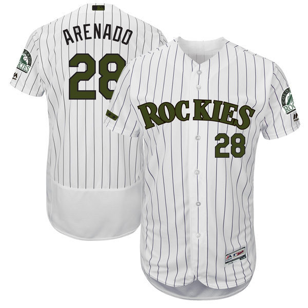 Men’s Colorado Rockies #28 Nolan Arenado Majestic White 2017 Memorial Day Authentic
