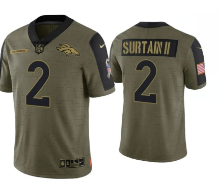Men’s Denver Broncos #2 Patrick Surtain II 2021 Olive Salute To Service Golden Limited Jersey