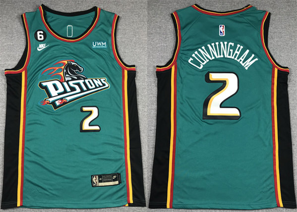 Men’s Detroit Pistons #2 Cade Cunningham Blue With No.6 Patch Stitched Jersey