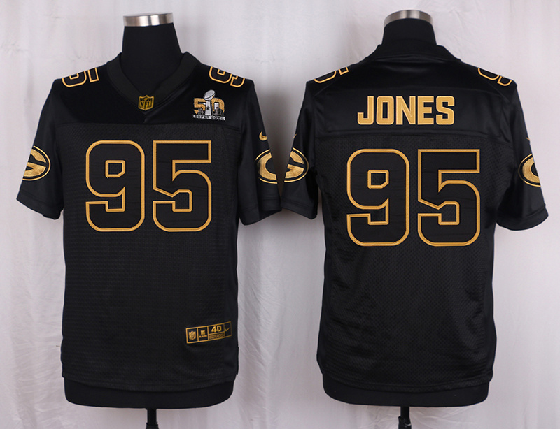 Mens Green Bay Packers #95 Jones Pro Line Black Gold Collection Jersey