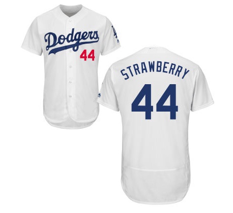 Men’s Los Angeles Dodgers #44 Darryl Strawberry White Elite Stitched MLB Majestic Jersey