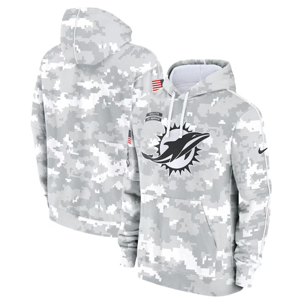 Men’s Miami Dolphins 2024 Arctic Camo Salute to Service Club Fleece Pullover Hoodie