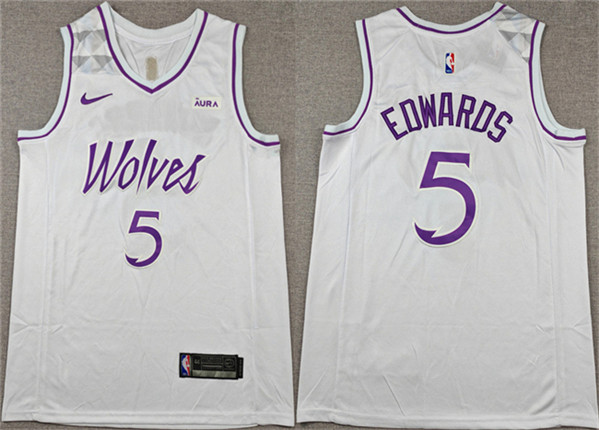 Men’s Minnesota Timberwolves #5 Anthony Edwards White Stitched Jersey