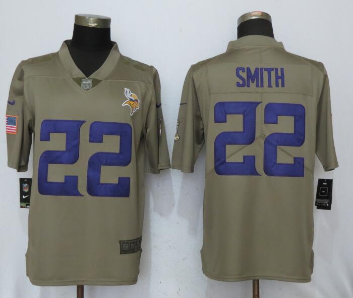 Mens Minnessota Vikings #22 Smith Olive Salute to Service Limited Jersey