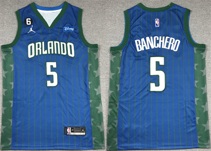 Men’s Orlando Magic #5 Paolo Banchero Blue With No.6 Patch Icon Edition Stitched Swingman Jersey