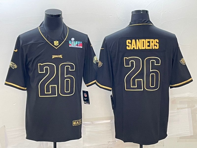 Men’s Philadelphia Eagles #26 Miles Sanders Black Golden Super Bowl LVII Patch Edition Limited Jersey