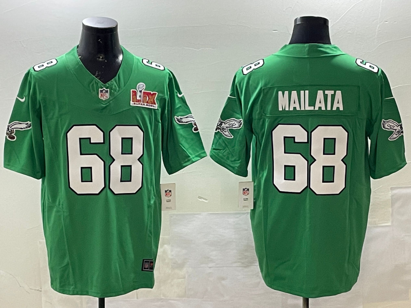 Men’s Philadelphia Eagles #68 Jordan Mailata Green 2025 Super Bowl LIX Patch Vapor Jersey