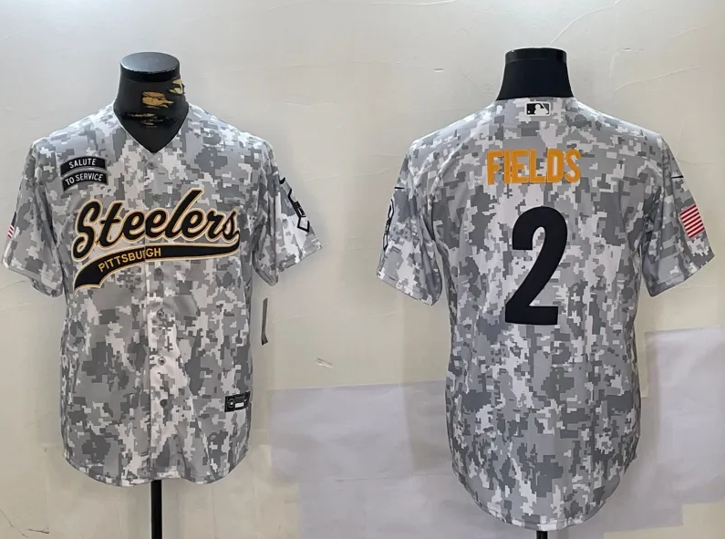 Men’s Pittsburgh Steelers #2 Justin Fields Arctic Camo 2024 Salute to Service Jersey