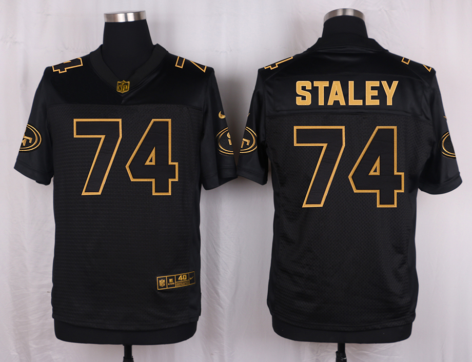Mens San Francisco 49ers #74 Staley Pro Line Black Gold Collection Jersey