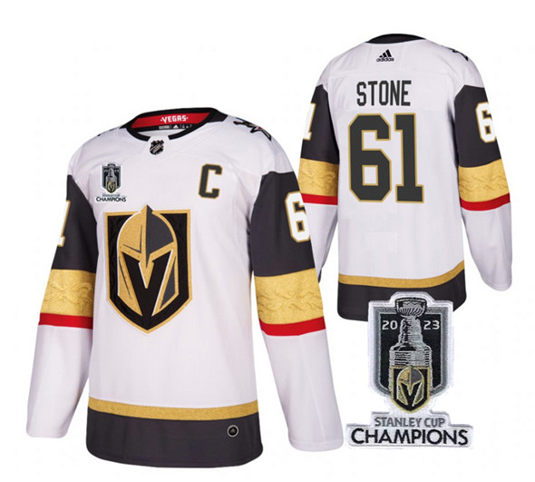 Men’s Vegas Golden Knights #61 Mark Stone White 2023 Stanley Cup Champions Stitched Jersey