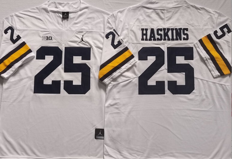 Michigan Wolverines White #25 HASKINS jersey