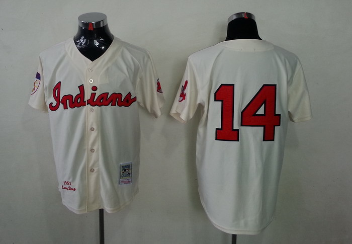 MLB Cleveland Indians #14 Cream-colored Throwback Jersey