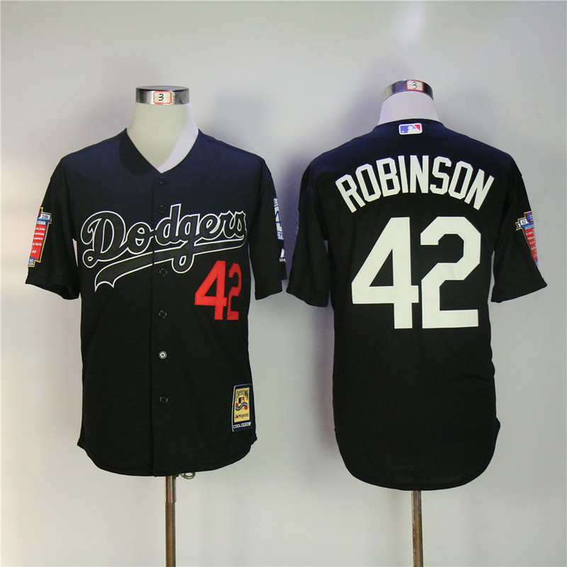 MLB Los Angeles Dodgers #42 Robinson Black Cooperstown Collection 1955 Hall Of Fame & Dual Patch Throwback Jersey