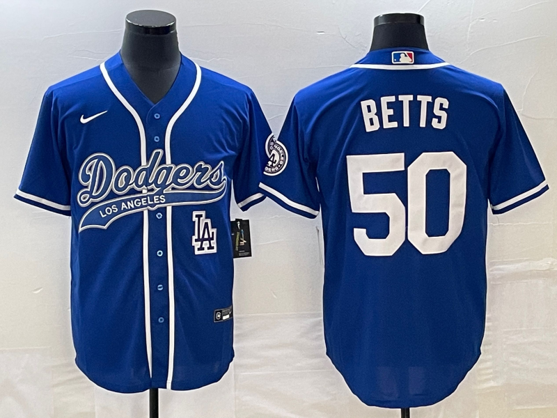 MLB Los Angeles Dodgers #50 Mookie Betts Blue With Patch Cool Base Stitched Baseball Jersey