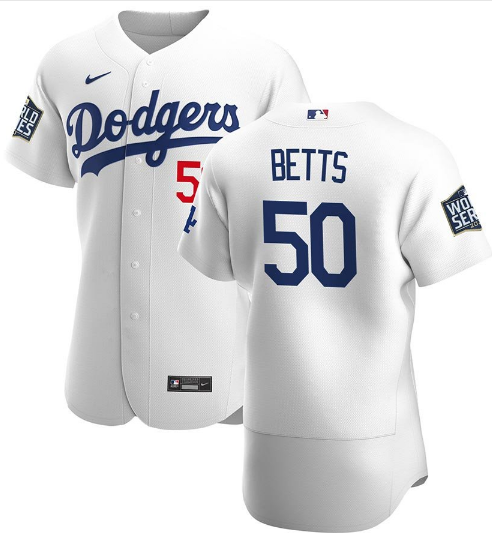 MLB Los Angeles Dodgers #50 Mookie Betts White 2020 World Series Flexbase Jersey