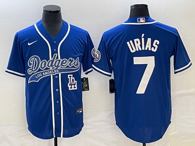 MLB Los Angeles Dodgers #7 Julio Ur??as Blue With Patch Cool Base Stitched Baseball Jersey