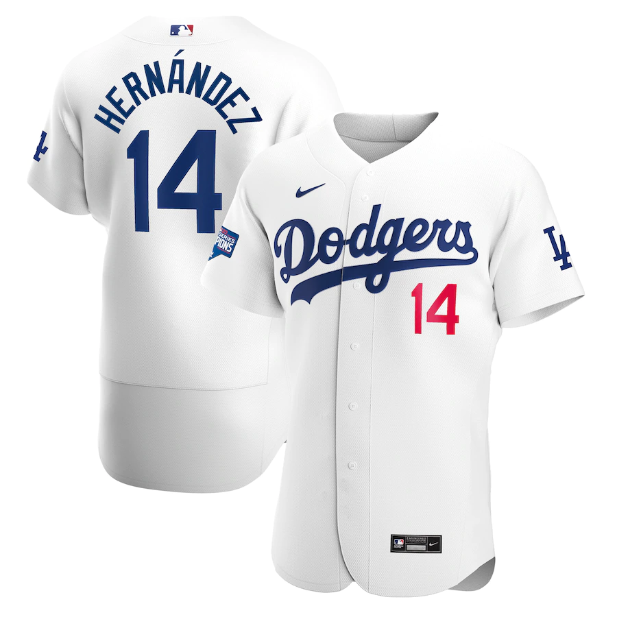 MLB Los Angeles Dodgers Grey #14 Kik?? Hern??ndez White 2020 World Series Champions Patch Flexbase Jersey