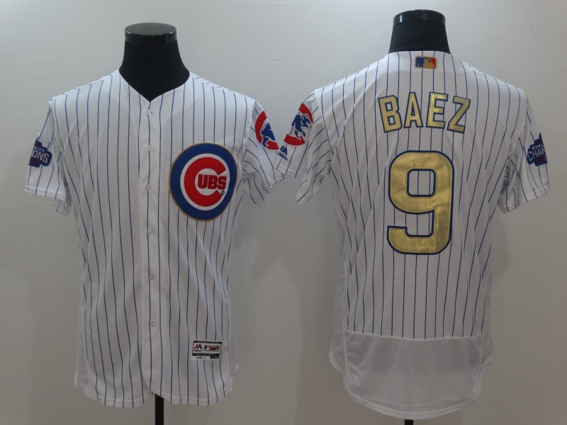 MLB Majestic Chicago Cubs #9 Baez Gold Program White Flex Base Elite Jersey