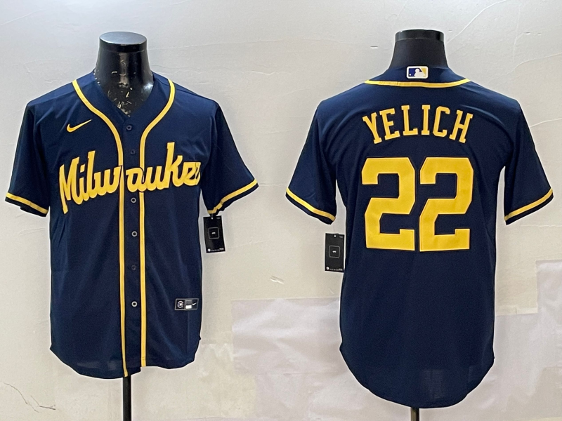 MLB Milwaukee Brewers #22 Christian Yelich Navy With Home Patch Limited Jersey