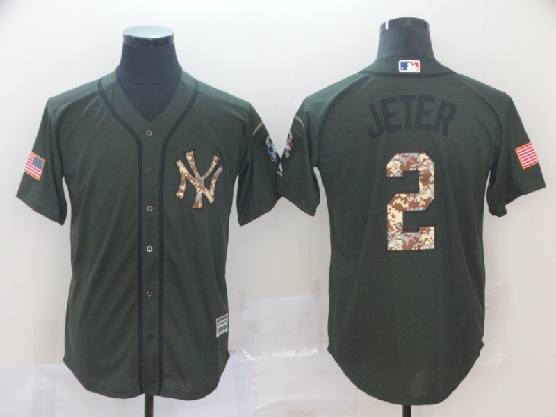 MLB New York Yankees #2 Jeter Green Salute To Service Men Jersey