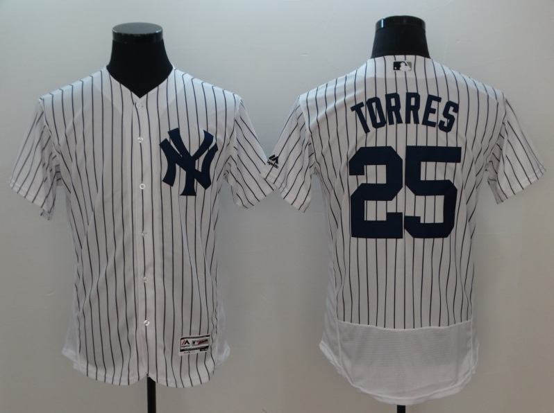 MLB Yankee 25 Gleyber Torres White Flexbase Elite Men Jersey