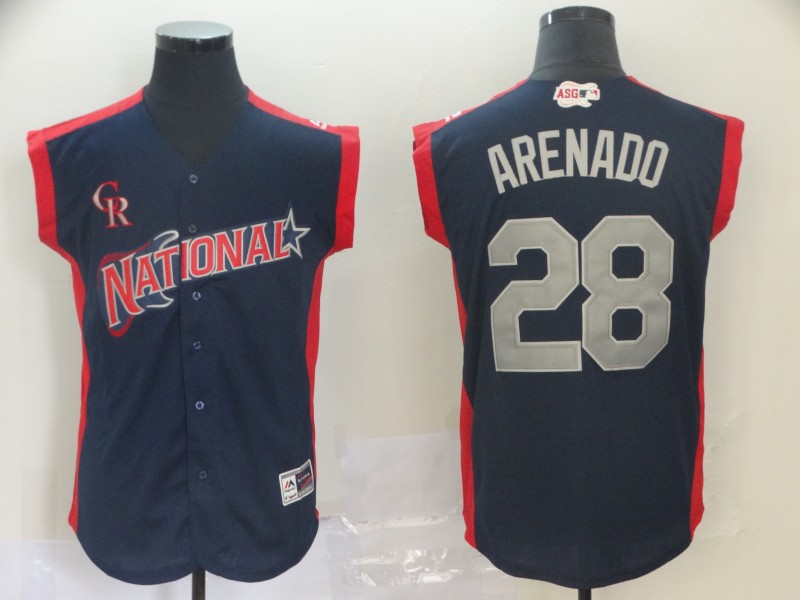 National League #28 Nolan Arenado Navy 2019 MLB All-Star Game Workout Jersey
