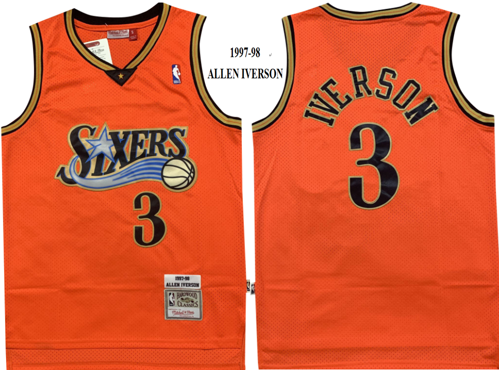 NBA 76ers 3 Allen Iverson Orange Hardwood Classics Men Jersey
