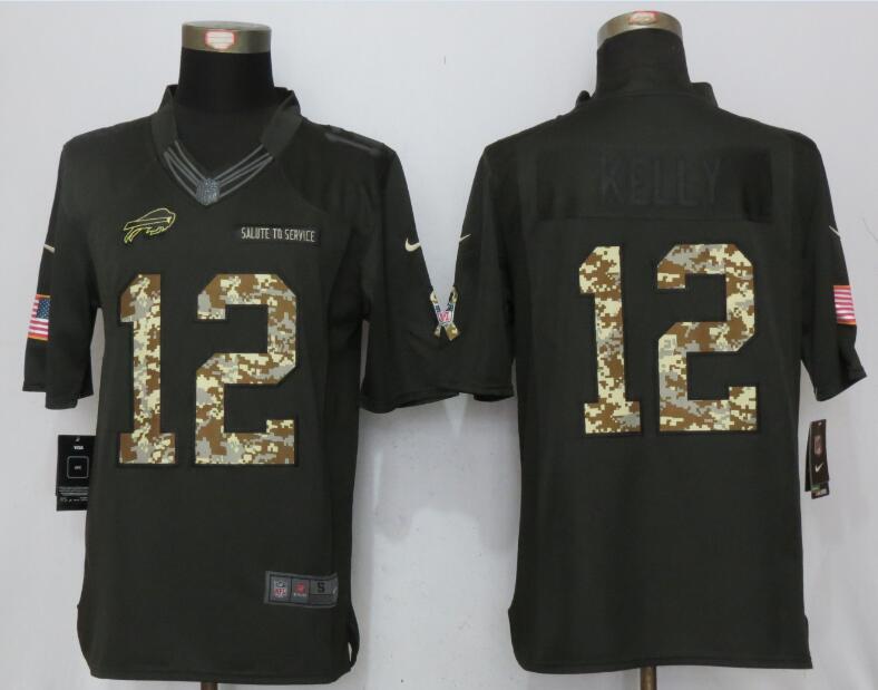 New Nike Buffalo Bills 12 Kelly Anthracite Salute To Service Limited Jersey