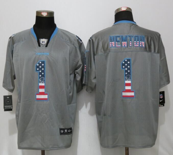 New Nike Carolina Panthers 1 Newton USA Flag Fashion Gray Elite Jersey