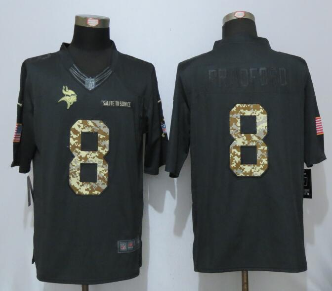 New Nike Minnesota Vikings 8 Bradford Anthracite Salute To Service Limited Jersey