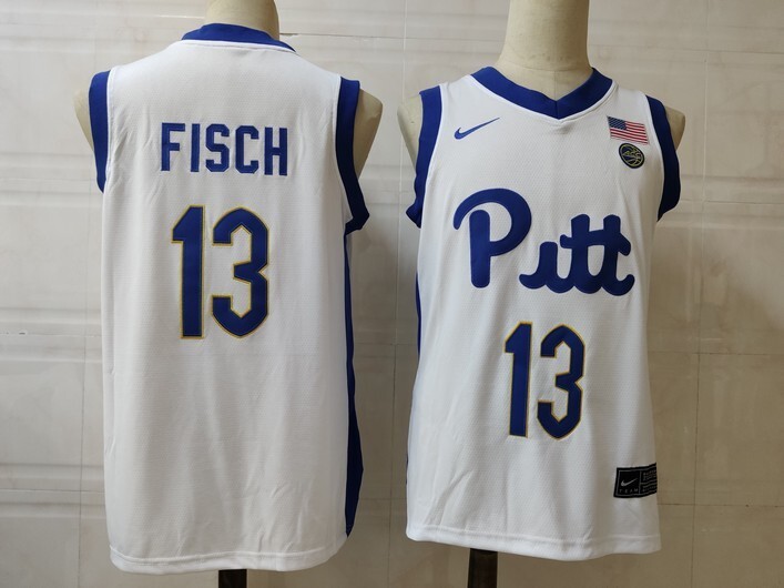 Pittsburgh Panthers PITT basketball #13 Fisch White jersey