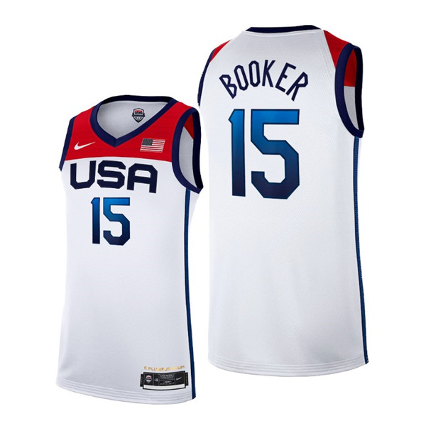 USA Basketball #15 Devin Booker 2021 White Olympics Home Jersey