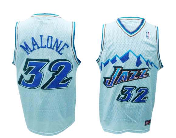 White Carl Malone Throwback NBA Utah Jazz #32 Jersey