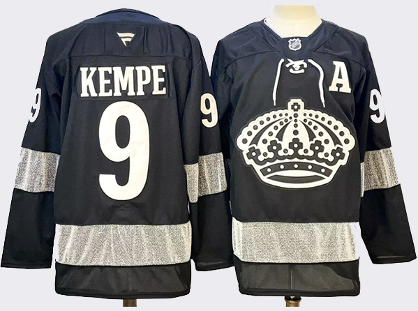 Men’s Los Angeles Kings #9 Adrian Kempe Black 2024-25 Home Stitched Hockey Jersey