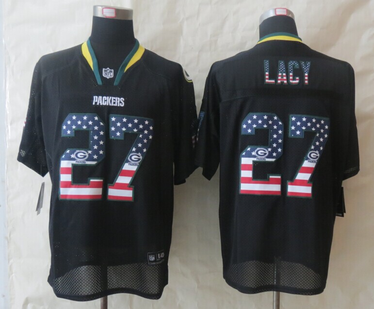2014 New Nike Green Bay Packers Packers 27 Lacy USA Flag Fashion Black Elite Jerseys