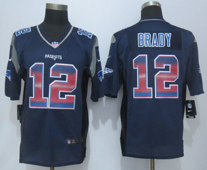 2015 New Nike New England Patriots Patriots 12 Brady Pro Line Navy Blue Fashion Strobe Jersey