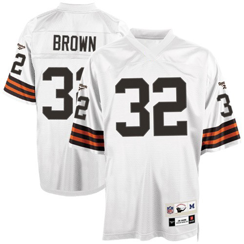 #32 Jim Brown White NFL Cleveland Browns Throwback Jersey