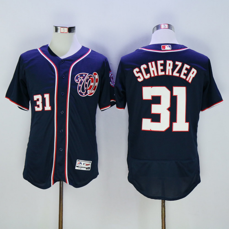 Majestics MLB Washington Nationals #31 Scherzer Blue Jersey