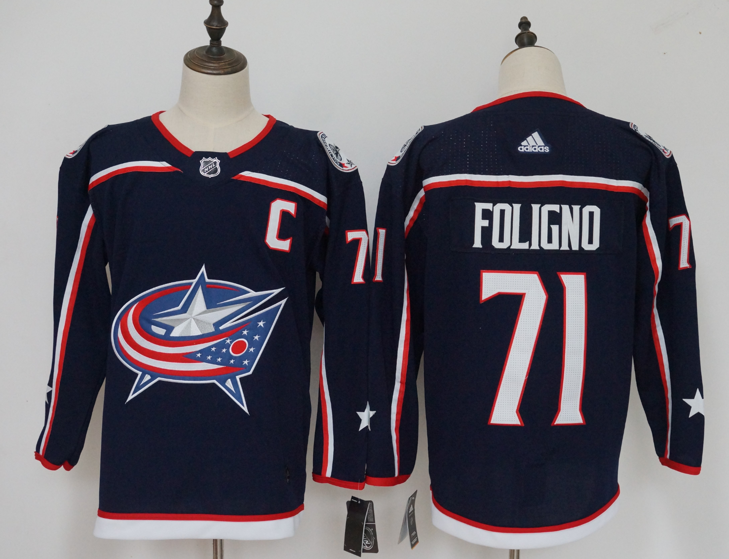 Men’s Adidas Columbus Blue Jackets #71 Nick Foligno Navy Stitched NHL Jersey