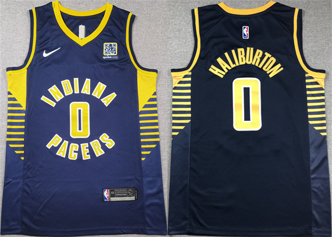 Men’s Indiana Pacers #0 Tyrese Haliburton Navy Icon Edition Stitched Basketball Jersey