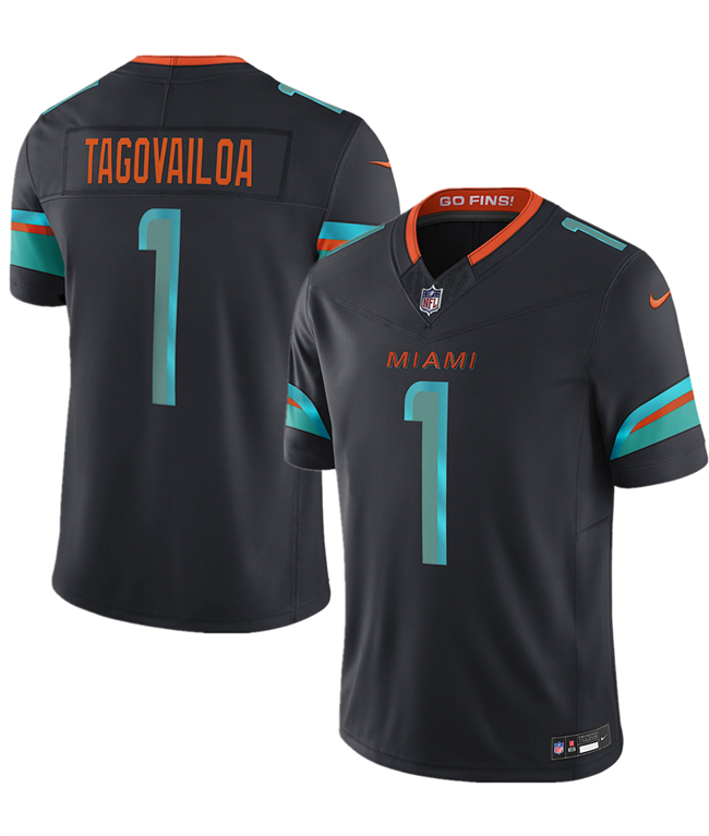 Men’s Miami Dolphins #1 Tua Tagovailoa Black 2025 F.U.S.E. ??Rivalries?? Vapor Limited Jersey
