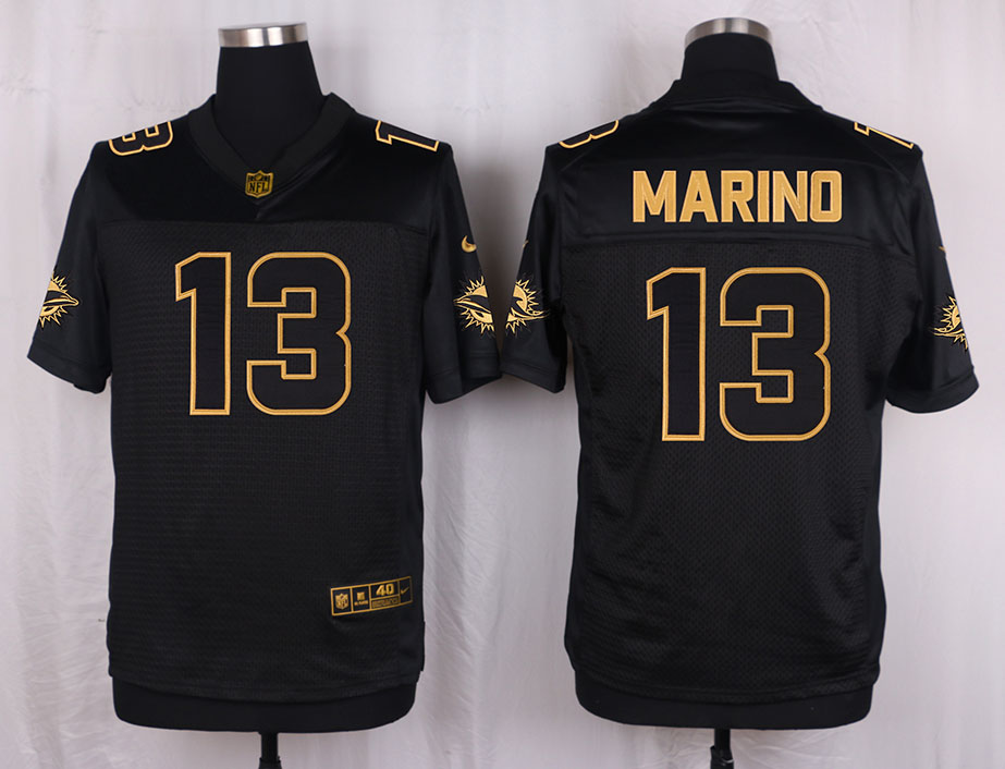 Mens Miami Dolphins #13 Marino Pro Line Black Gold Collection Jersey