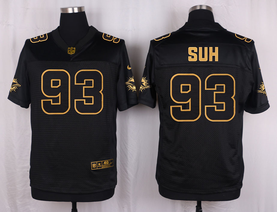 Mens Miami Dolphins #93 Ndamukong Suh Pro Line Black Gold Collection Jersey