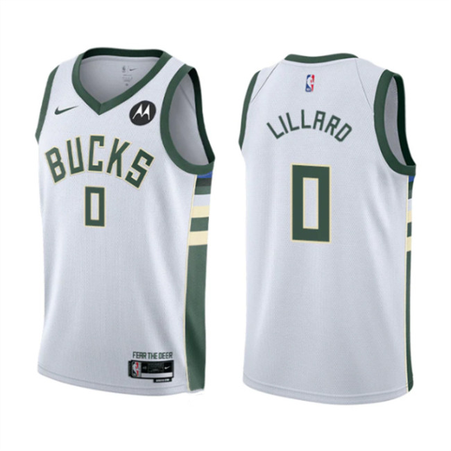 Men’s Milwaukee Bucks #0 Damian Lillard White Association Edition Stitched Jersey
