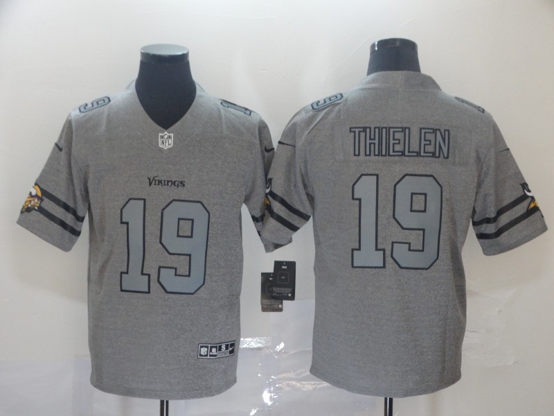 Men’s Minnesota Vikings #19 Adam Thielen 2019 Gray Gridiron Team Logo Limited Jersey