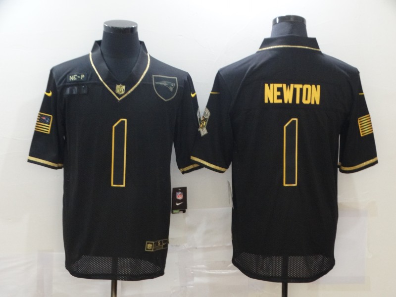 Men’s New England Patriots Patriots #1 Newton 2020 Black/Gold Salute To Service Limited Jersey
